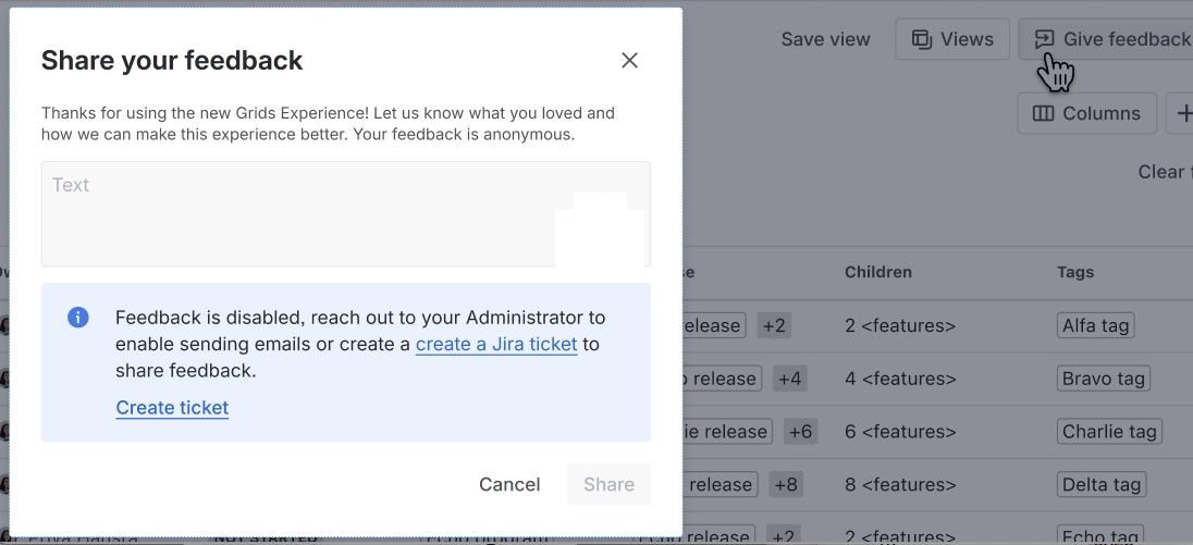 We are happy to announce that a beta features grid is coming, expected in version 11.22.1. It inherits all the new great UX from the modernized epics grid. You’ll be able to explore: