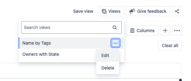 You can create multiple saved views. Each view is unique to you, allowing you to create shortcuts for your most-used configurations. Find your saved views in the new Views menu, where you can open a view, edit a view name, or delete a view.